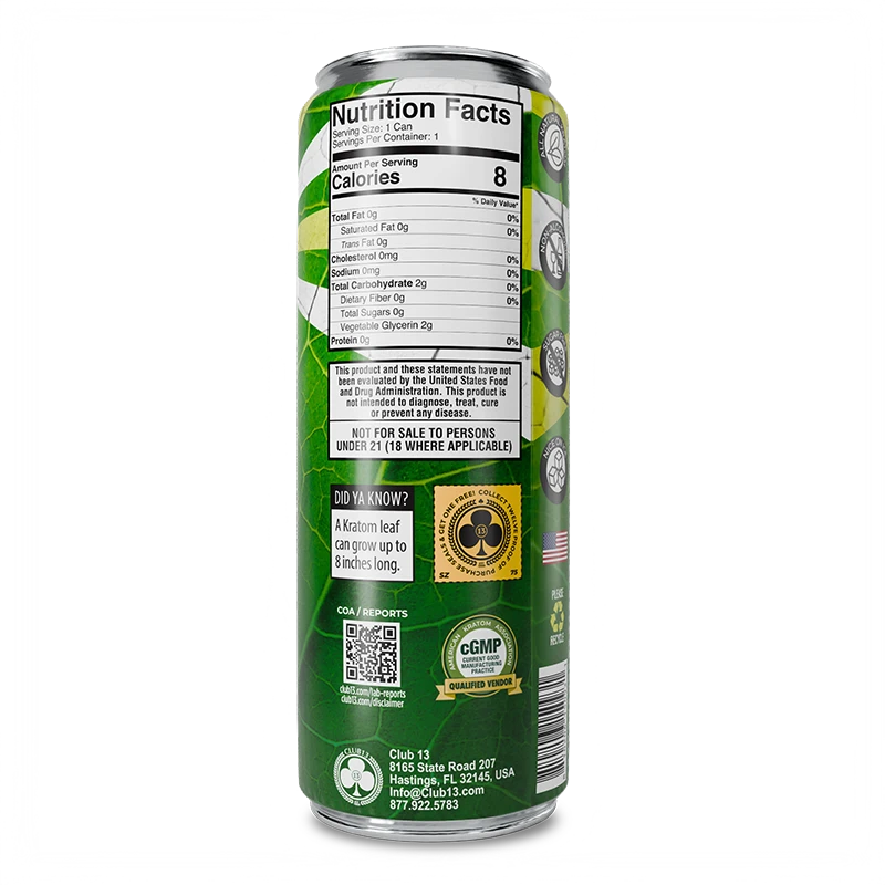 Club13 Mojo Citrus blends zesty, refreshing citrus flavor with the energizing effects of MIT isolate. Each 12oz can contains 75mg Mitragynine and 40mg caffeine for a balanced, uplifting boost that supports focus and good vibes.