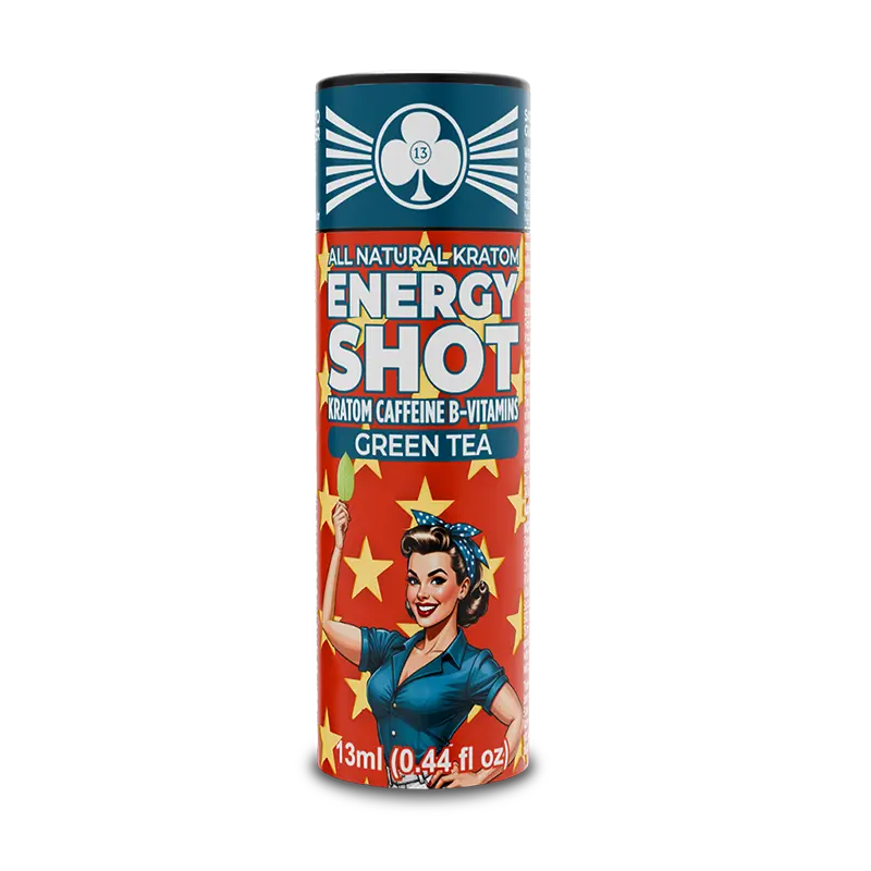 Power through your day with the Club13 All Natural Kratom Energy Shot in Green Tea flavor. This compact 13ml shot blends natural kratom extract, caffeine, and essential B-vitamins to deliver smooth, sustained energy without the crash. Enjoy the refreshing taste of green tea while getting a balanced boost that supports your day.