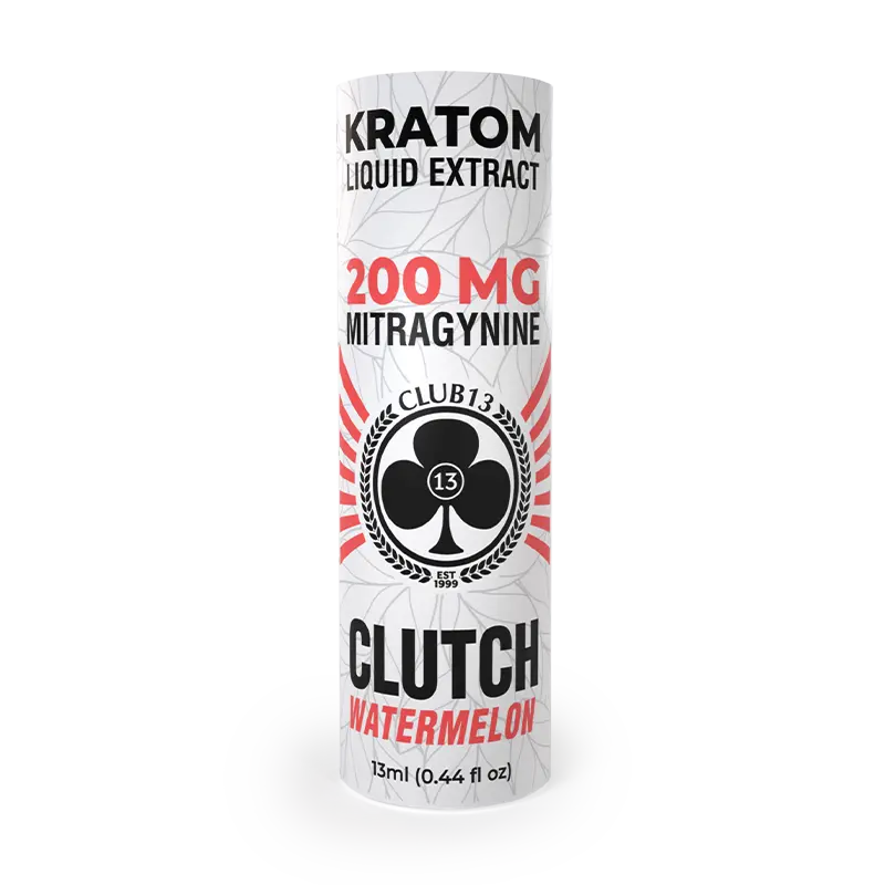 Clutch Watermelon 200 is a liquid kratom extract designed for portability, consistency, and simplicity. Each 13mL bottle contains 200mg of mitragynine and features a streamlined alkaloid composition, minimizing naturally occurring minor alkaloids like paynantheine, speciogynine, and speciociliatine.